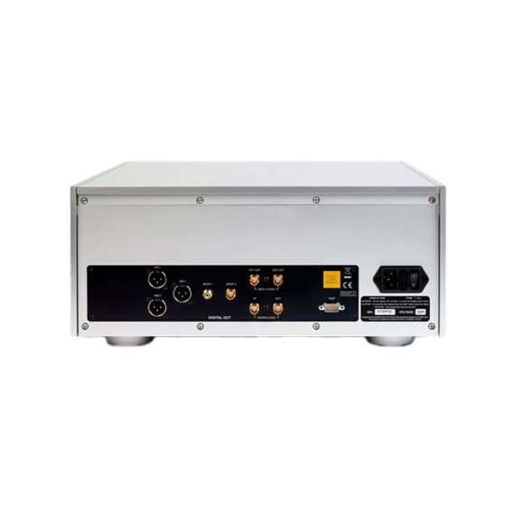Word Clock output on 1x BNC connector. With the Transport in Master mode, a TTL-compatible 44.1kHz Word Clock derived from the internal crystal oscillator is available on this output. The calibration accuracy when shipped is +/-10ppm, not temperature compensated. |