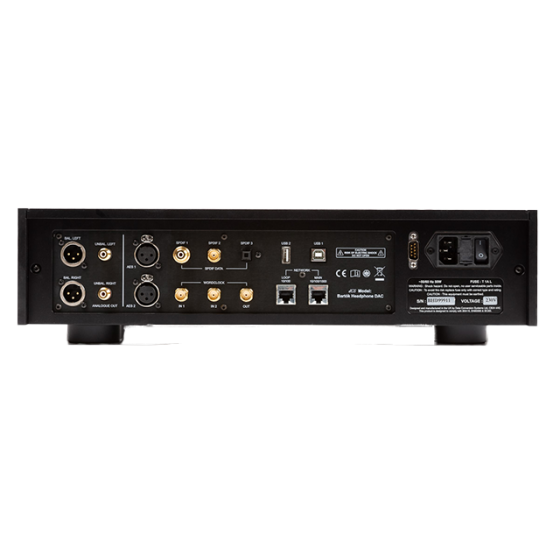 | 耳機輸出 | 1 x stereo balanced output 4-pin male XLR connector; 1 x stereo unbalanced output on 6.35mm (1/4”) 3-pole jack. Full-scale output levels: 1.4W rms into 33Ω, 0.15W rms into 300Ω. Minimum headphone impedance: 33Ω |