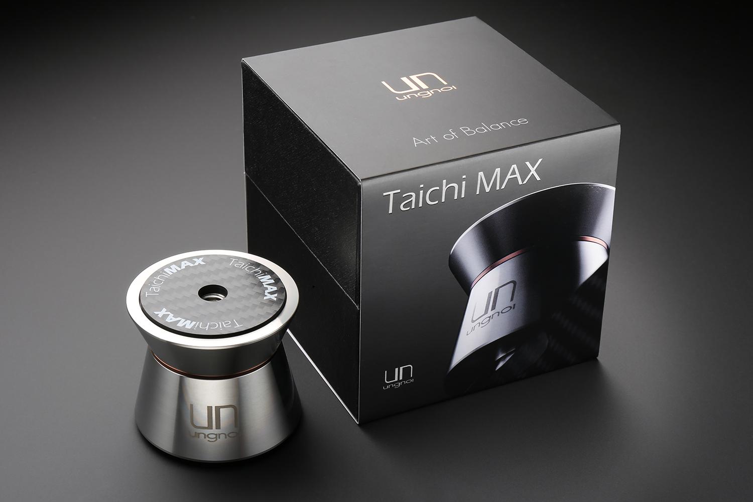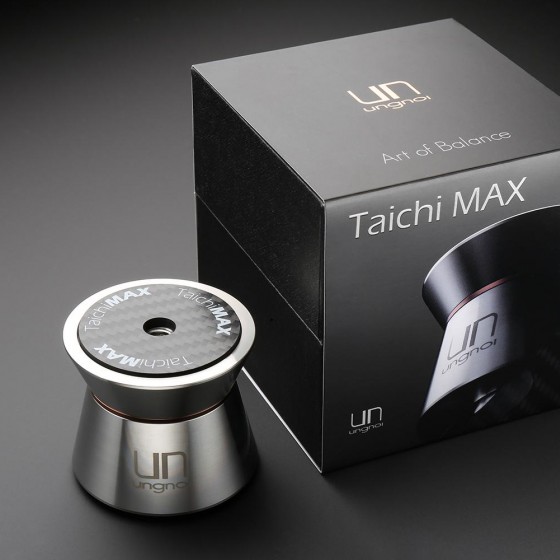 Taichi Base 的成功,令我們決定製造一款更能符合重量級音響器材的產品,藉由引導或轉化振動能量來優化器材表現,太極 Max 使用了直徑比原來大 50% 的 Super Grade 5 超精密陶瓷珠,配合頂部碳纖維墊片,更有效以懸浮式水平移動化解器材震動,使用太極 Max 後,高頻延伸通透細緻、泛音豐富、聲音充滿活生感,中頻能量充沛、低頻下潛更深並具有彈性。 此外,46.5mm 的高度設計亦能適用於市面上大部份高機腳器材(AllinOne、DAC、串流轉盤、擴大器、CD唱盤等等)。