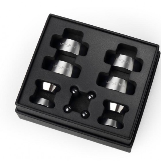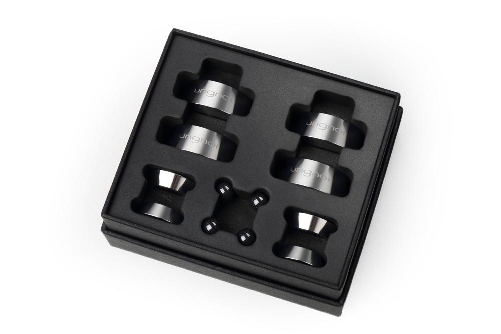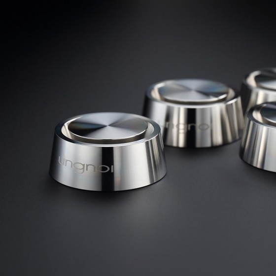 由Taichi Mini進行大幅度升級後產品,Taichi Nino在設計上更加完美,新加的底座讓Nino在高度沒有改變的情況下,更穩固地承托您的音響器材,Taichi Nino使用精工無磁不鏽鋼打造而成的新底座,加上五級陶瓷珠作震動處理,能大大提升聲音細節表現,背景的底噪明顯減少。此外,Taichi Nino不會影響音色平衡,泛音與中高頻延伸都更精細之餘,還能提升聲音表現之綿密感。